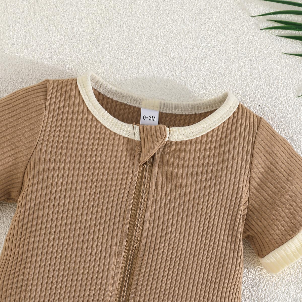 Bafeicao Unisex Baby Boy Girl 2 Pack Rompers Short Sleeve 2 Way Zipper One Piece Jumpsuits Clothes Sets