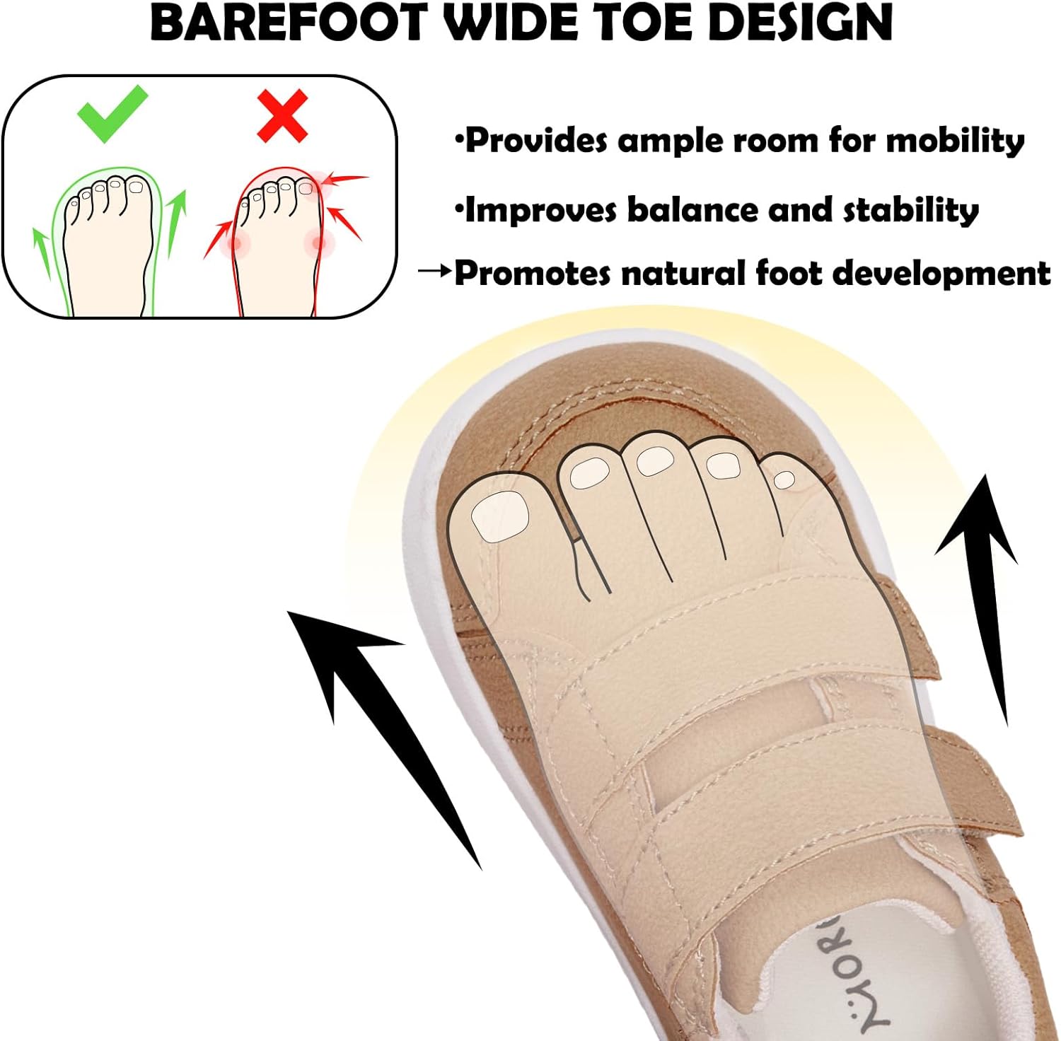 - Barefoot for Easy Toddler Steps:Our toddler wide toe barefoot shoes offer a barefoot-like experience, enhancing tactile feedback and assisting in taking those first steps with ease.