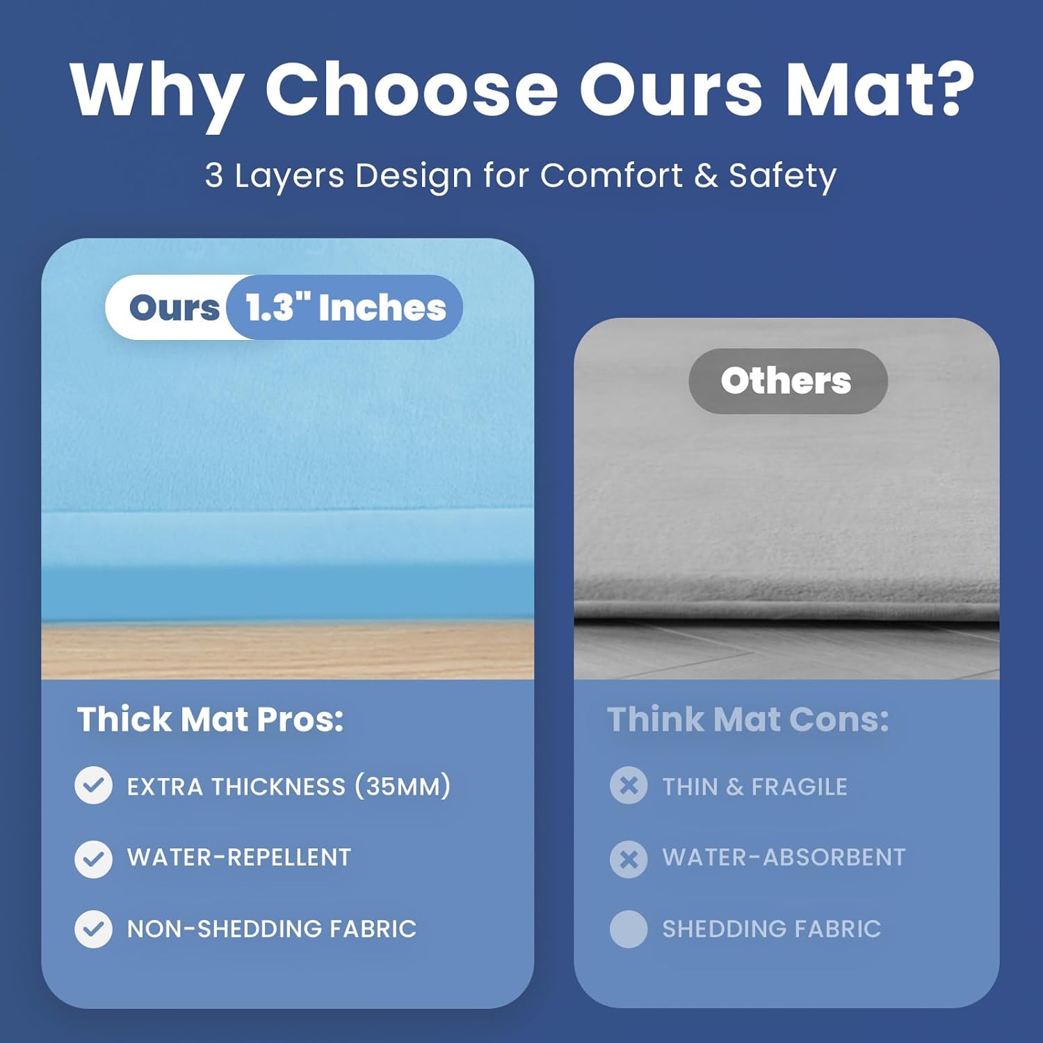 Baby Play Mat for Floor,1.3" Thick Elasti-Foam 50x50 Playpen Mat for Toddlers Infant kids,Water-Repellent Soft Coral Velvet for Tummy Time,Non-Slip Backing for Crawling,Tatami Style(Light Blue)