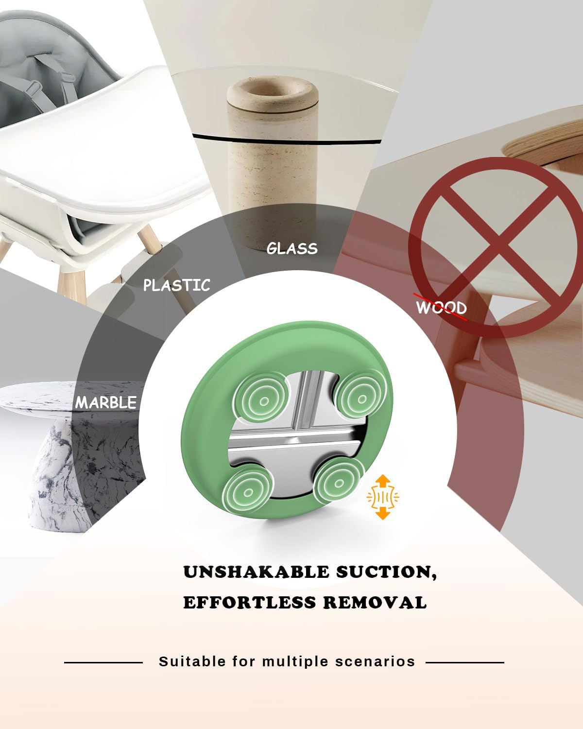 - Innovative Design: This baby plate with suction combines durable 304 stainless steel with a silicone suction base featuring 4 strong, non-slip suction cups. Keeps plates in place on highchair trays or tables, helping your child self-feed and minimizing mealtime mess. Say goodbye to flipped toddler plates and hello to free hands for mom!