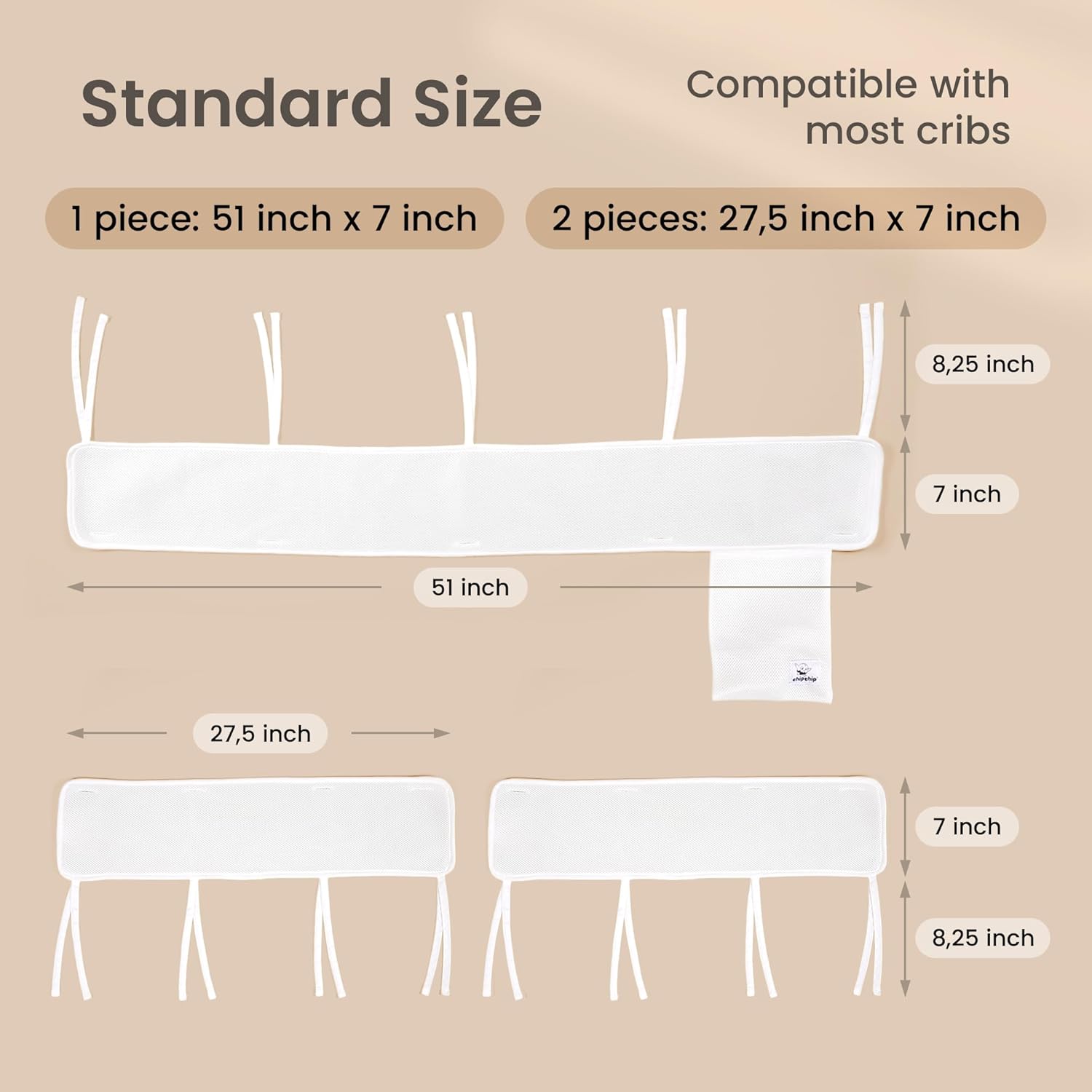 - Universal Fit & Neutral Design – This crib teething guard features flexible mesh and long ties to fit most crib styles and rail sizes. The clean white color and simple design blend well with any nursery décor, whether for a boy or girl, and suit both classic and modern themes.