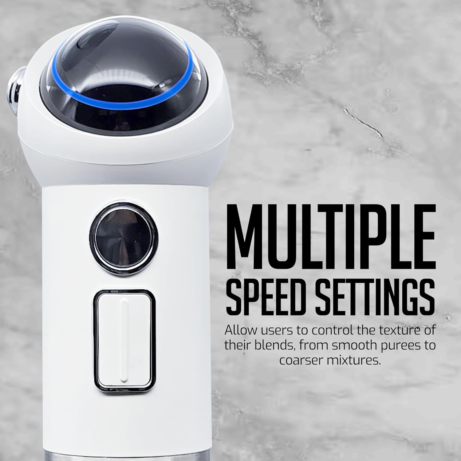 - POWERFUL & CORDLESS – Experience the convenience and power of this versatile cordless immersion hand blender. Equipped with 300W of power, it delivers flexibility for blending both inside and outside the kitchen. Featuring durable stainless-steel blades, this hand blender ensures smooth, consistent results with every use.