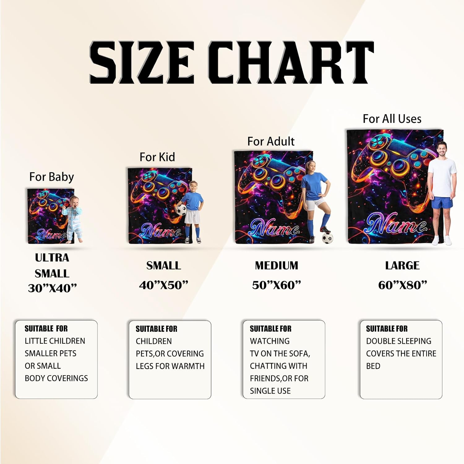 Ship Next Day, Custom Gaming Blanket - Printed in USA, Personalized Game Themed Blanket, Custom Name Blankets, Gift for Gamers Gaming Lover Enthusiasts, Birthdays, Holidays, Soft & Warm Throw