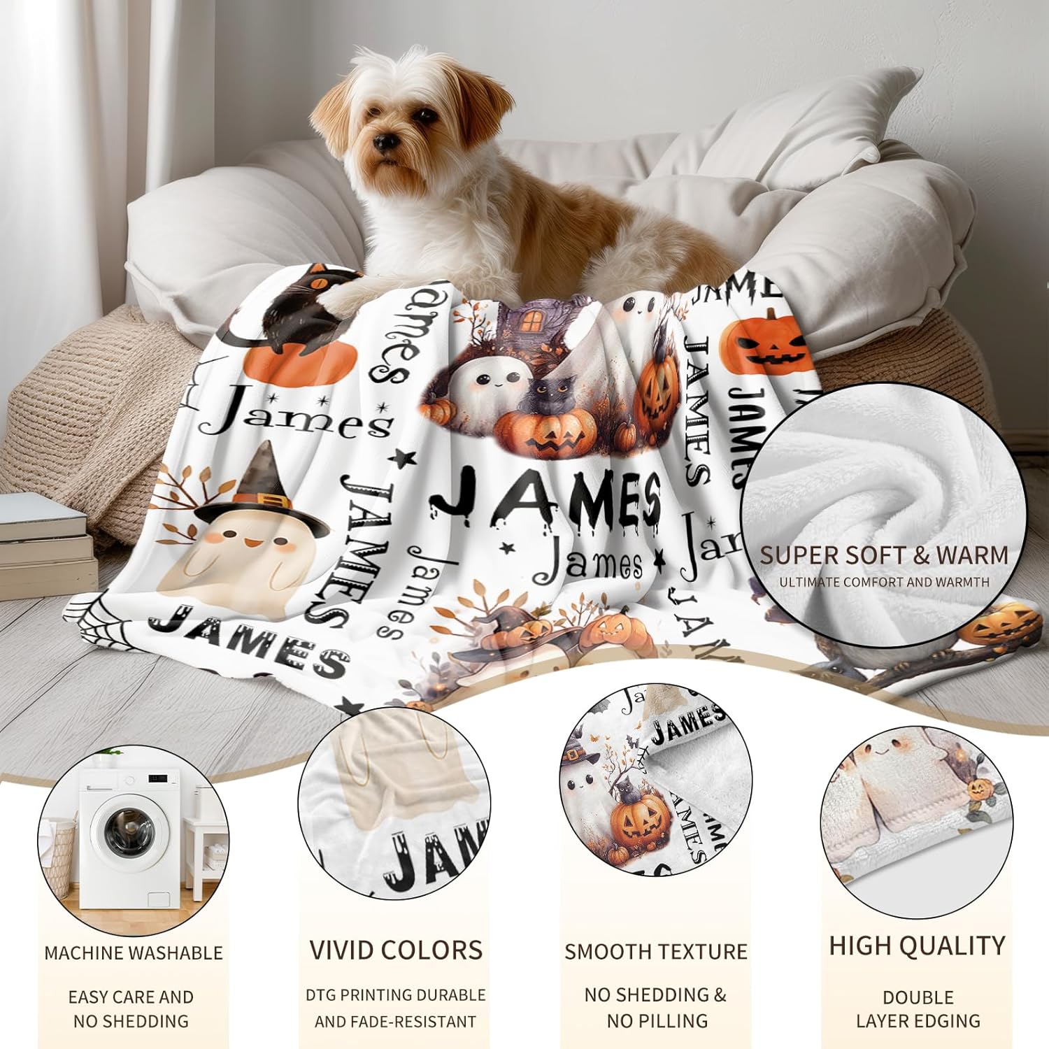 Ship Next Day, Custom Halloween Blanket - Printed in USA, Personalized Baby Blankets with Name, Gift for Kids Boys Girls, Unique Present for Birthday, Christmas, Halloween Bats Toddler Blanket