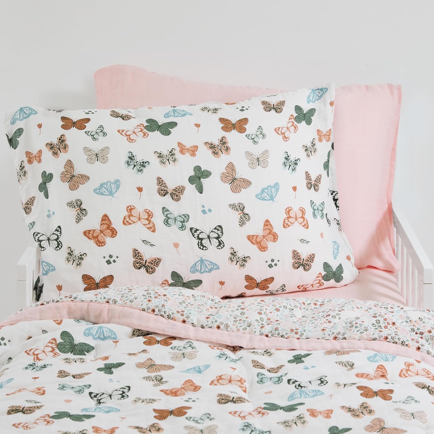 Little Unicorn Standard Pillowcase 2 Pack | Super Soft & Breathable Muslin Fabric | Snug Envelope Closure (Butterflies 2)