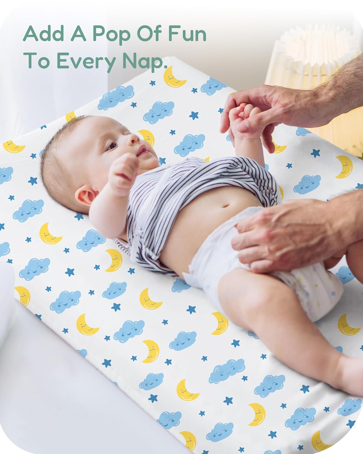 - Secure 360-Degree Elastic Fit: Designed with fully encased 360-degree elastic, this baby changing pad cover fits snugly around your changing pad, preventing slipping or shifting during diaper changes, providing a stable and secure surface for your baby.