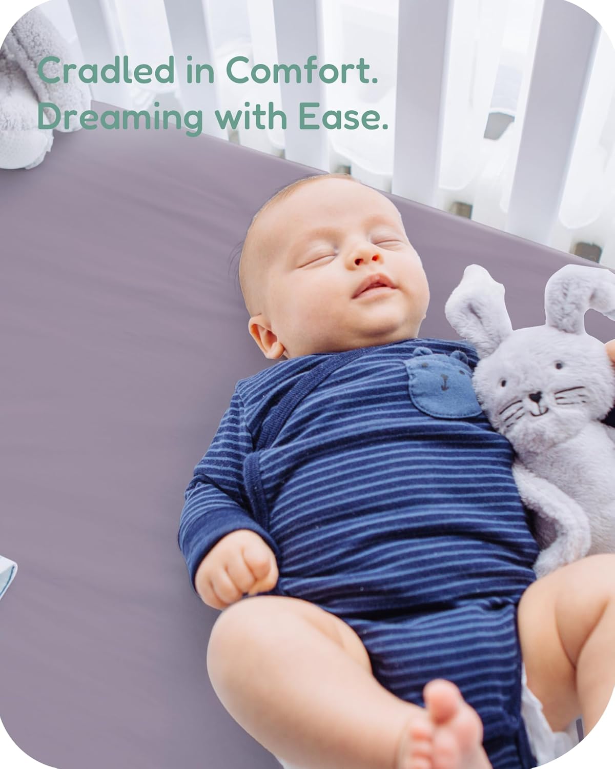 - Premium Softness & Comfort: Crafted from high-quality polyester, these mini crib sheets fitted are buttery soft, breathable, and temperature-regulating, keeping your baby cozy throughout every season. The gentle stretch ensures a snug fit, while the fabric remains airy yet warm for all-day comfort.