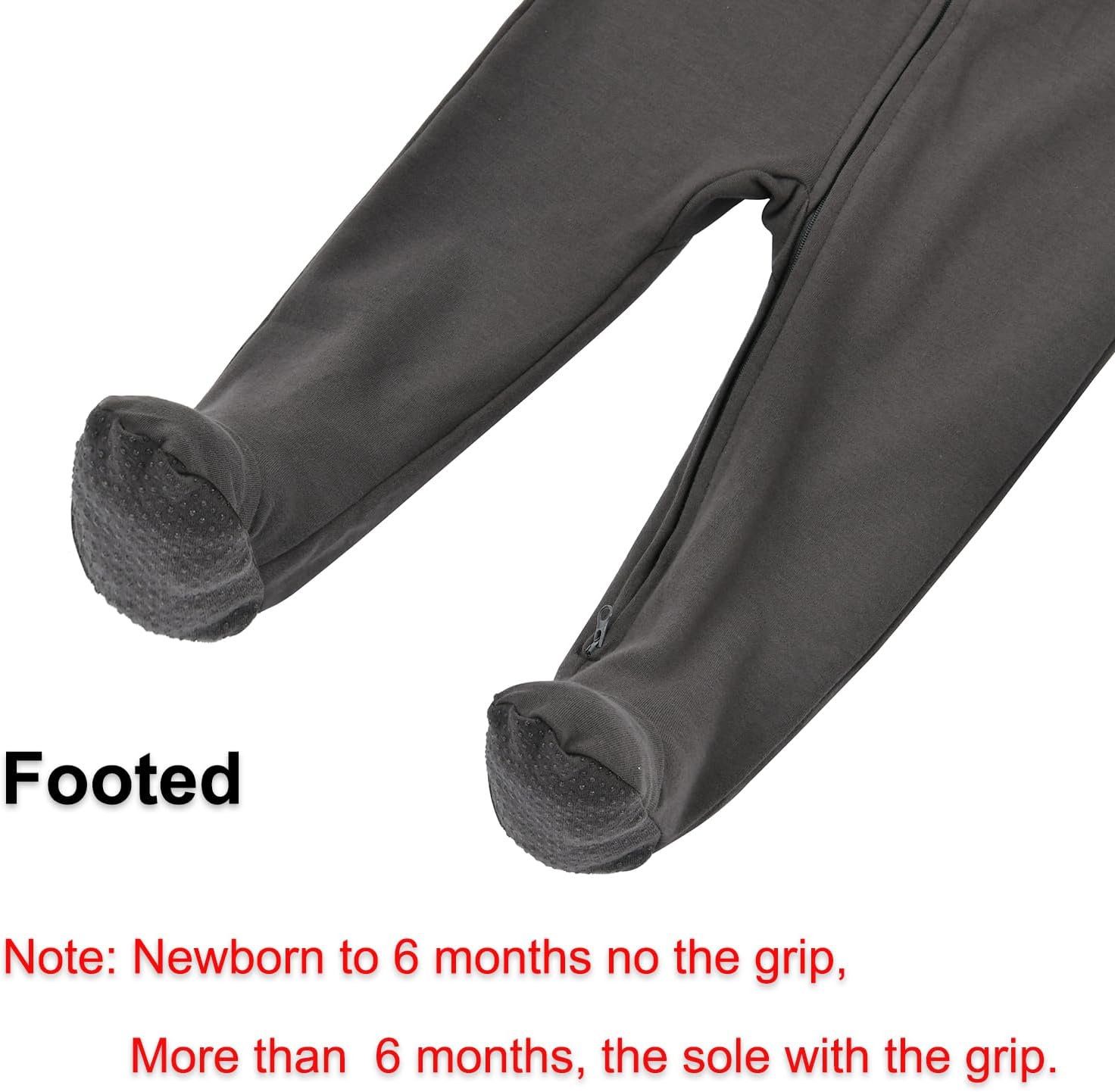 - Non-Slip Grips: These baby footed pjs size 6-12m and 12-18m have non-slip grips on the soles, providing safety for crawling or early walkers.(Note: Size Newborn to 6 months without the grips)