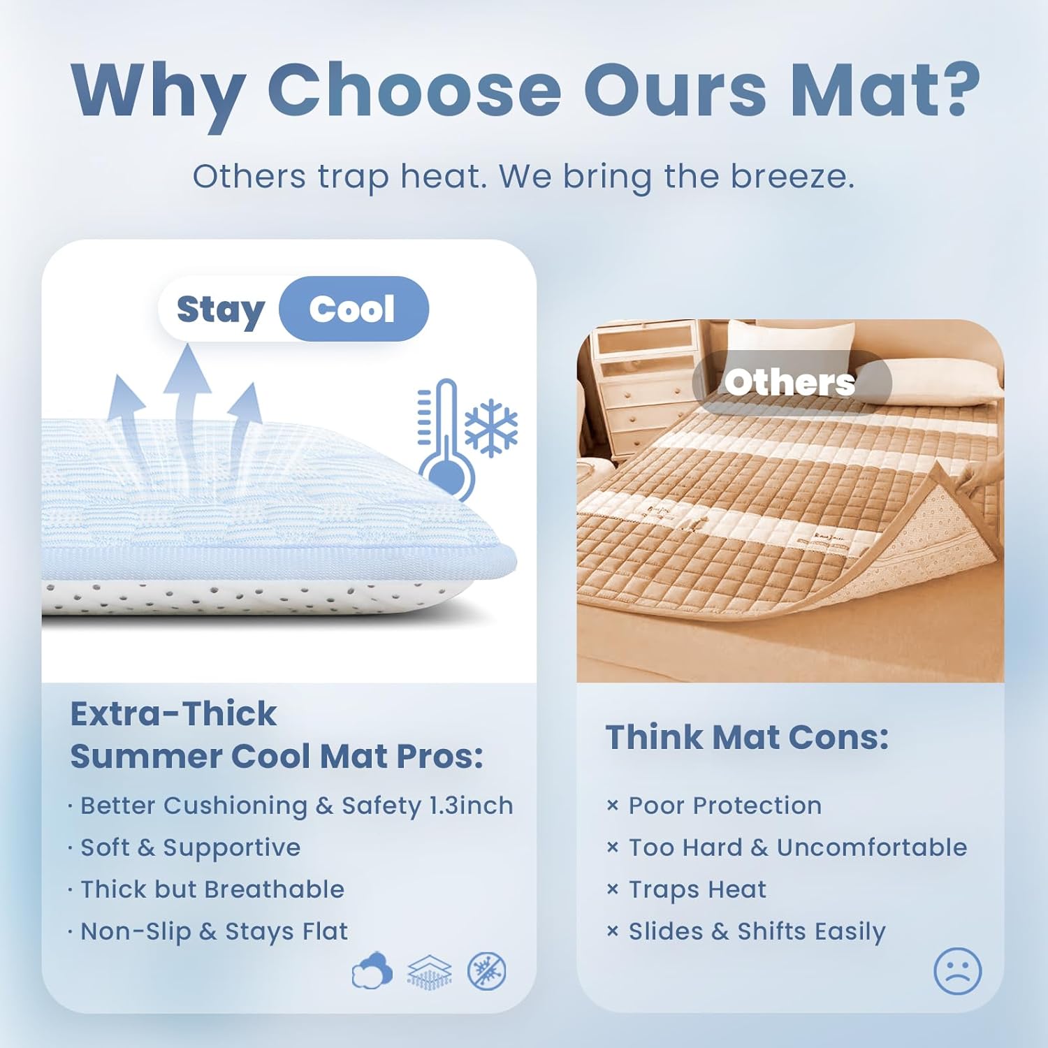 Baby Play Mat for Summer, 1.3 Thick Extra Large Memory Foam Cooling Floor Tummy Time Mat, Soft & Breathable, Non-Slip Rectangular for Toddlers’ Playtime & Rest(Light Blue,79"x118")