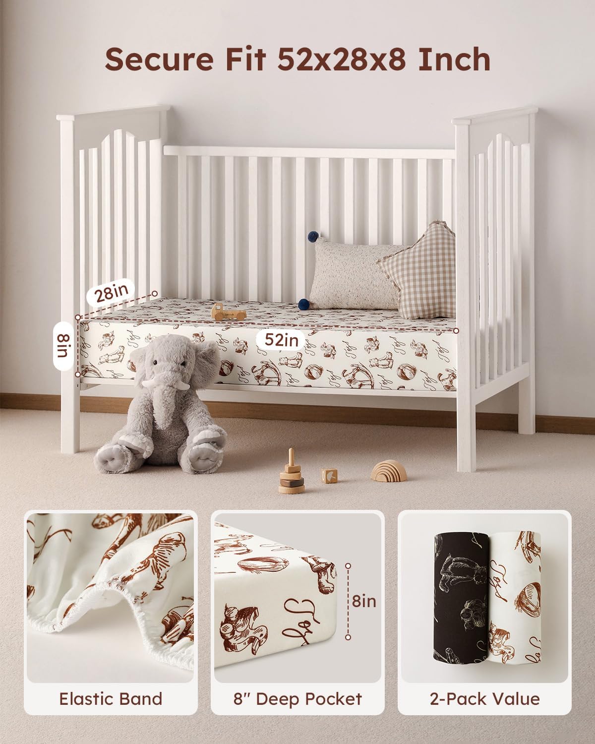 Yoofoss Baby Crib Sheets 2 Pack for Boys and Girls - 52x28 Fitted Crib Sheet Neutral Fits for Standard Crib and Toddler Mattress, Ultra Soft Breathable Microfiber Rocking Horse