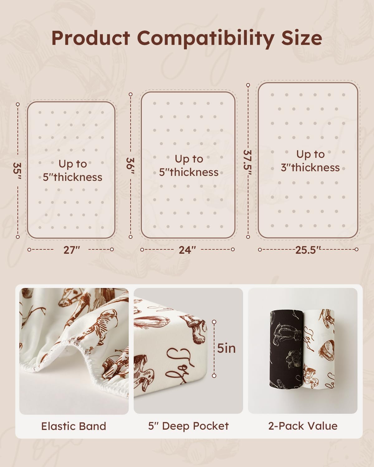 Yoofoss Baby Pack and Play Sheets 2 Pack for Boys and Girls - 38x26 Mini Crib Sheets Fitted Neutral Compatible with Graco Pack n Play Mattress,Ultra Soft Breathable Microfiber Rocking Horse