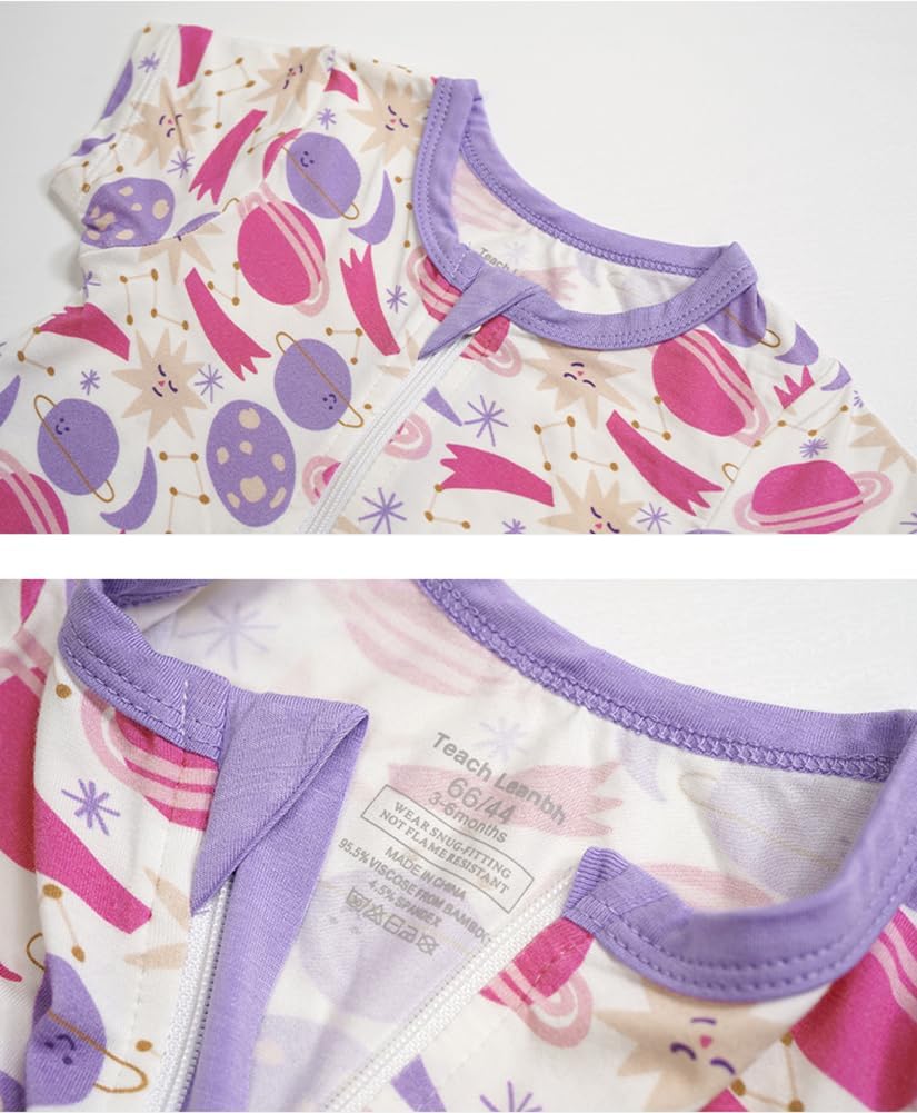 Teach Leanbh Toddler Unisex Baby Bamboo Viscose Pajamas 2 Way Zipper Short Sleeve Footless Romper Jumpsuit Sleep and Play