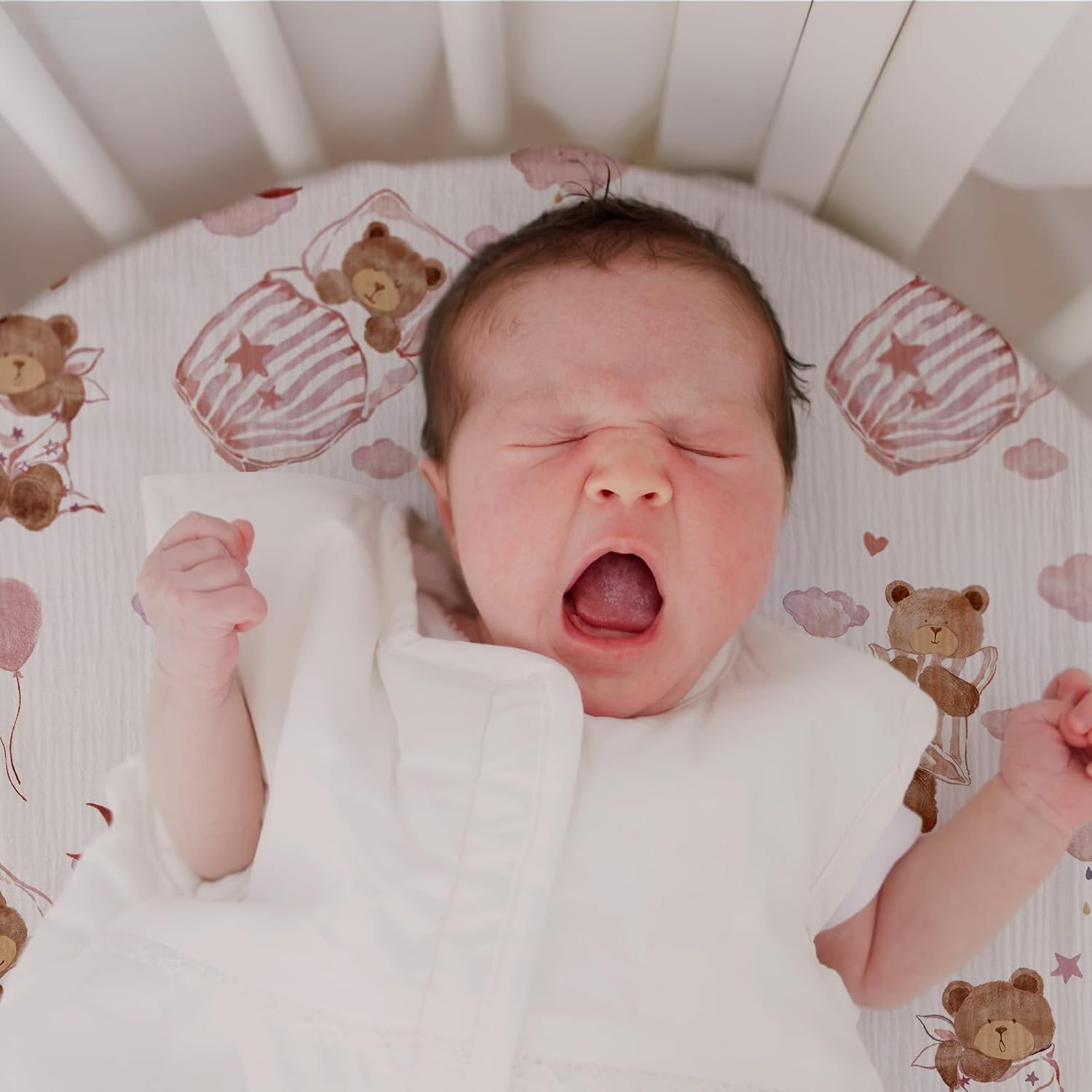 Gllquen Baby Muslin Bassinet Sheets 3 Pack, Breathable Elastic Cozy Fitted Cotton Bassinet Mattress Sheet for Baby Boy Girls, Fit for Hourglass Oval Rectangular Cradle Pad Sheets 33"x17" (Bear Dream)