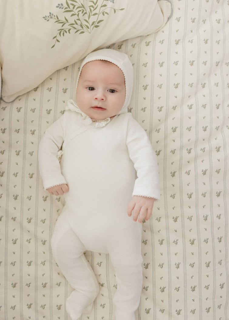 - Crafted from ultra-soft, breathable jersey knit cotton, this baby bedding set is gentle on delicate skin. The stretchy material ensures a perfect fit for any standard-sized mini crib.