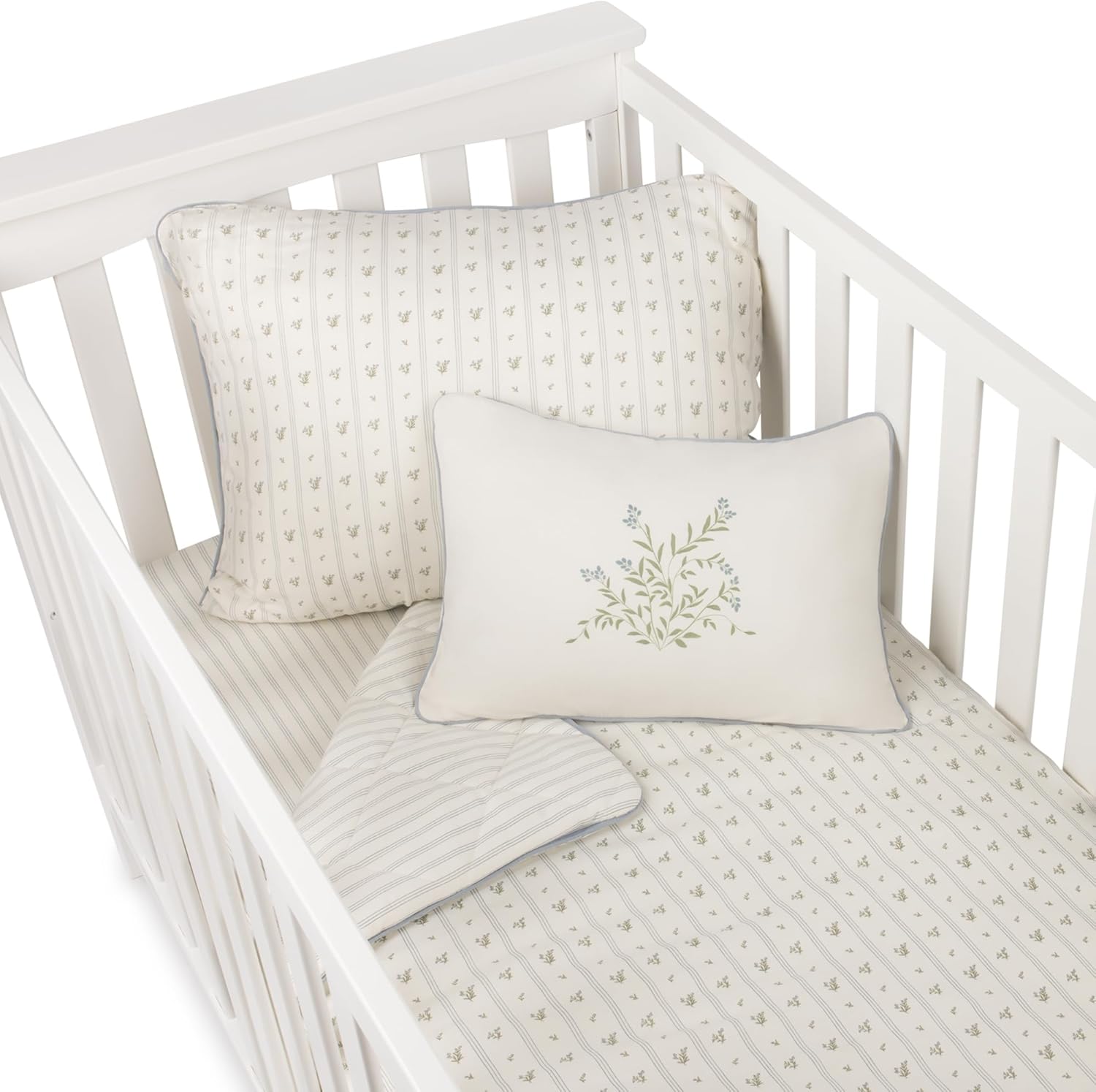 - Beautifully ribbon-wrapped and gift-ready, this mini crib comforter set is perfect for baby showers and a must-have on any baby gift registry—combining style, quality, and convenience.