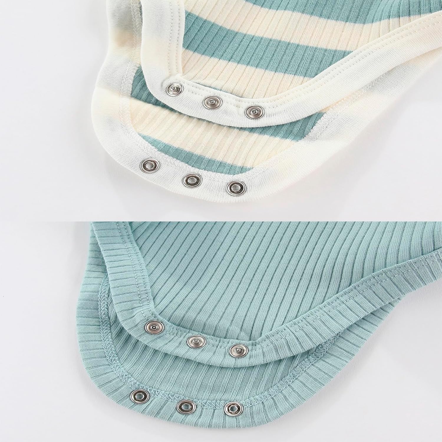 • 3 Snap Closure: with 3 snap buttons for easy dressing and diapering, and it can keep the diaper in stay, which is suitable for babies to wear when sleeping and playing.