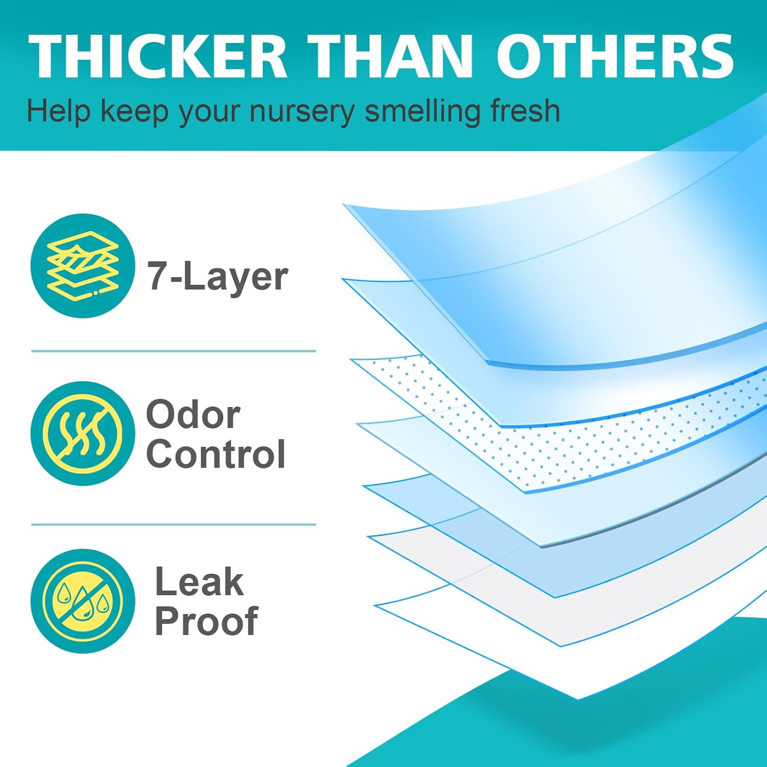 Refills Compatible with Diaper Genie Easy Roll Signature & Platinum Diaper Pail,5-Pack (150 Bags) for 7000 Newborn Diapers,7-Layer Powerful Odor Control.Extra Thickness,Durable & No Tear