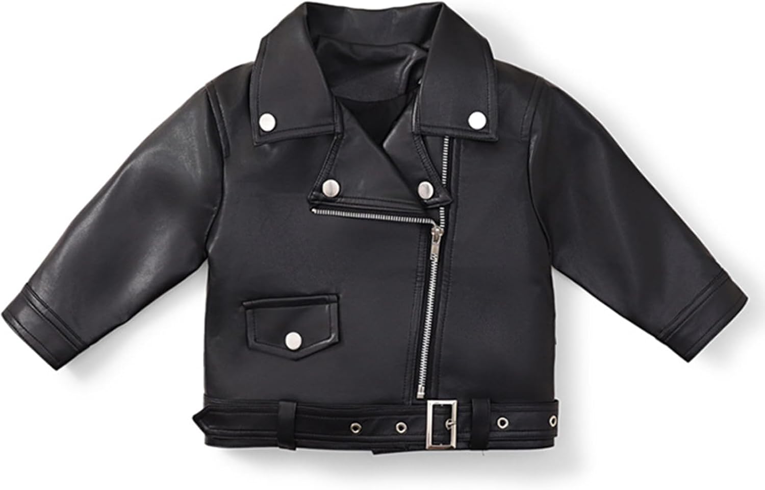 - Cute design: toddler lapel motorcycle jacket adopts fashion design, simple and slim design with a belt to make the baby more handsome, integrated oblique zipper design, suitable leather outerwear can let the baby match different clothes