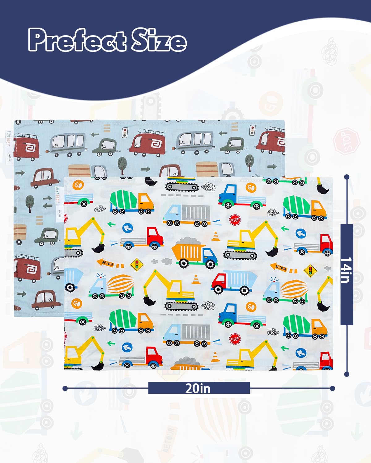 - Perfect Size -pillowcase fits 13x18 inches pillows,also loose fits 12x16 inches toddler pillows, travel pillows,neck pillow,toddler pillow,knee pillow or other small pillows.Unisex boys or girls.Perfect for travel,pre-school naps,bedtime.Pillowcase are special designed for 2 to 6 year olds as their first pillow.