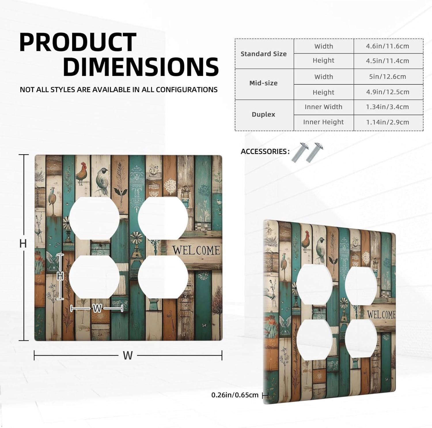 Outlet Covers Vintage Wood Brown Turquoise Splicing 2 Gang Double Duplex Decorative Light Switch Covers Electrical Wallplates Socket Faceplate For Farmhouse Cabin Decor