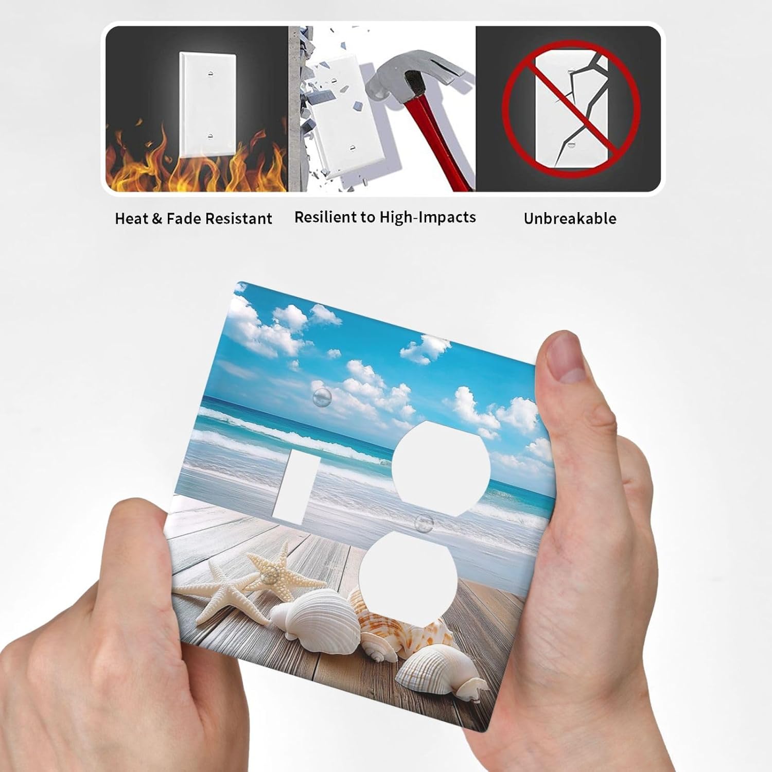 Wallplates Beach Waves Brown Wood Starfish Shells 1 Toggle 1 Duplex Switch Plate Electrical Gfci Faceplate Decorative Light Switch Covers For Bathroom Living Room Decor