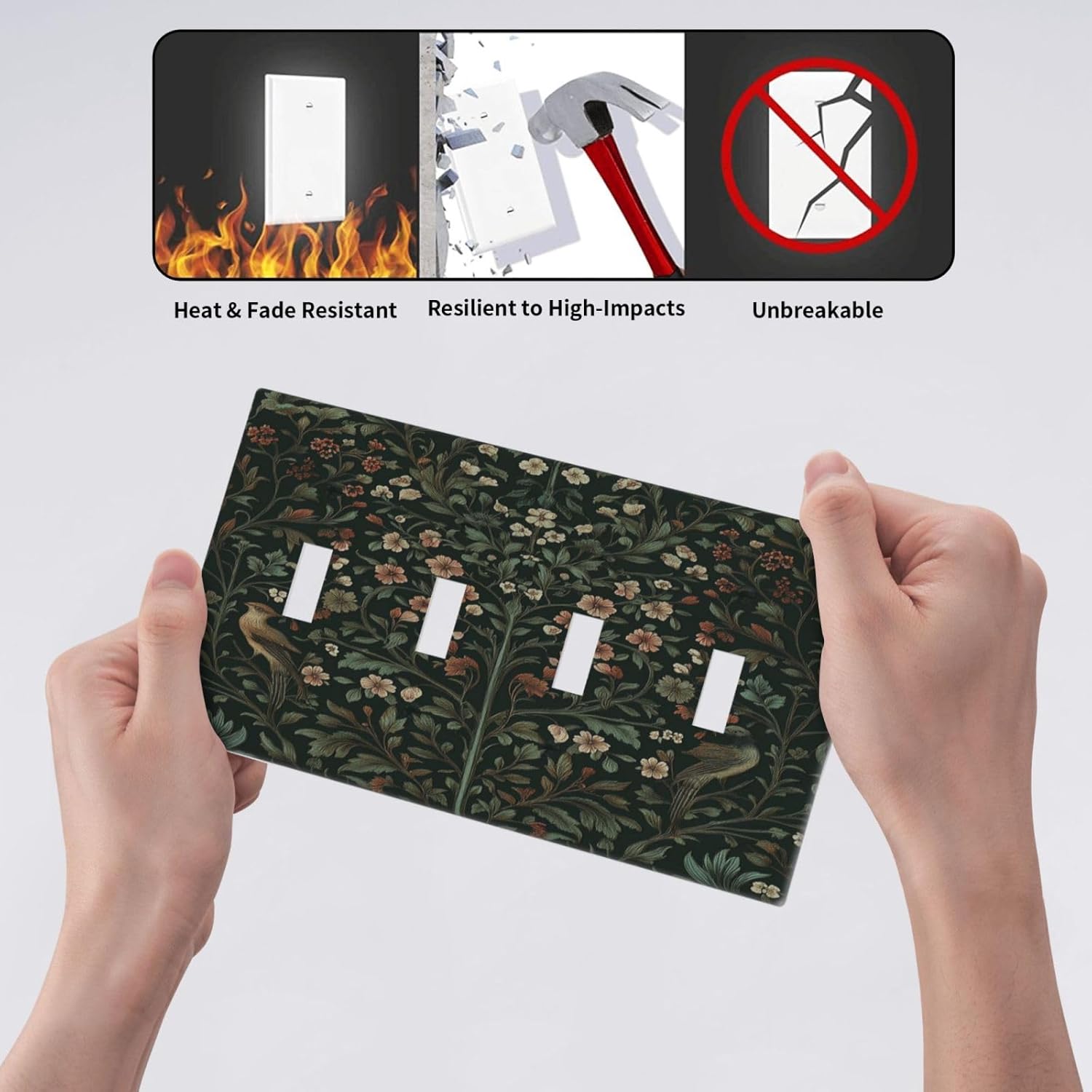Light Switch Covers Vintage Morris Colorful Flower Green Leaf Quad Toggle Electrical Faceplate 4 Gang Wall Plate Decorative Switch Plates For Bed Room Living Room Decor