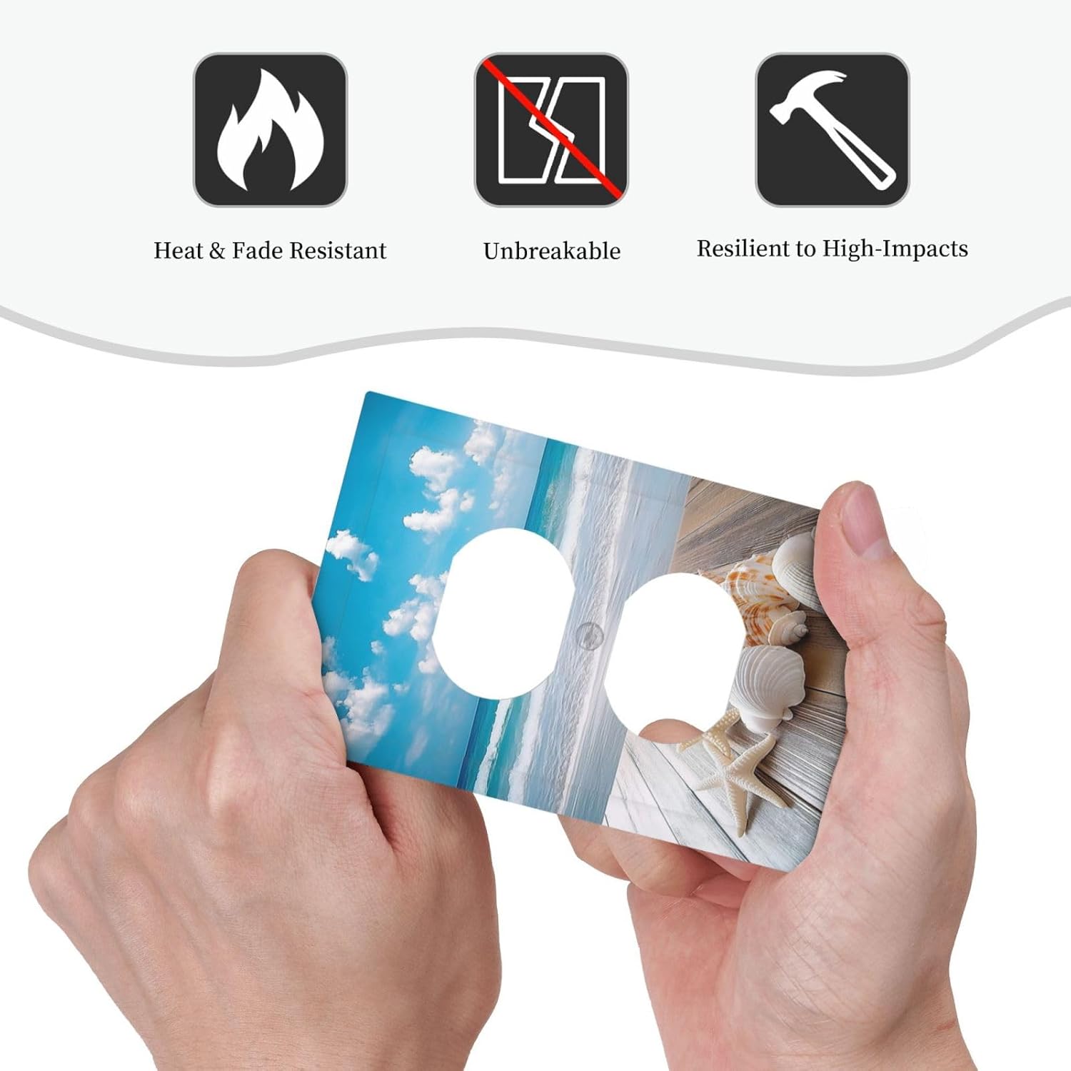 Outlet Covers Beach Waves Brown Wood Starfish Shells 1 Gang Duplex Light Switch Cover Decorative Switch Plates Electrical Receptacle Faceplate Wall Plate For Bathroom Living Room