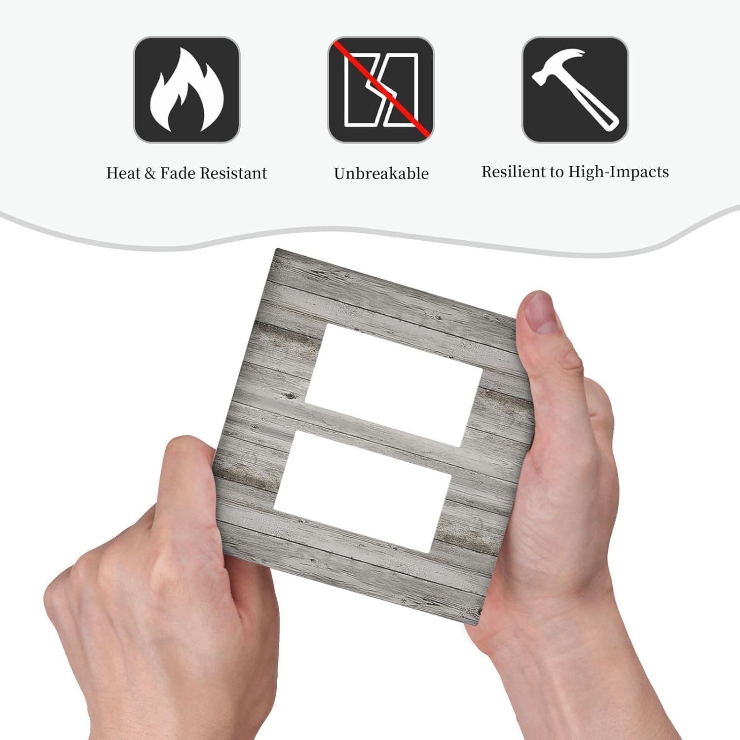 Decorative Outlet Covers Farmhouse Rustic Grey Barn Door Wood 2 Gang Double GFCI Rocker Electrical Wall Panels Light Switch Cover Plate for Bedroom Cabin Decor