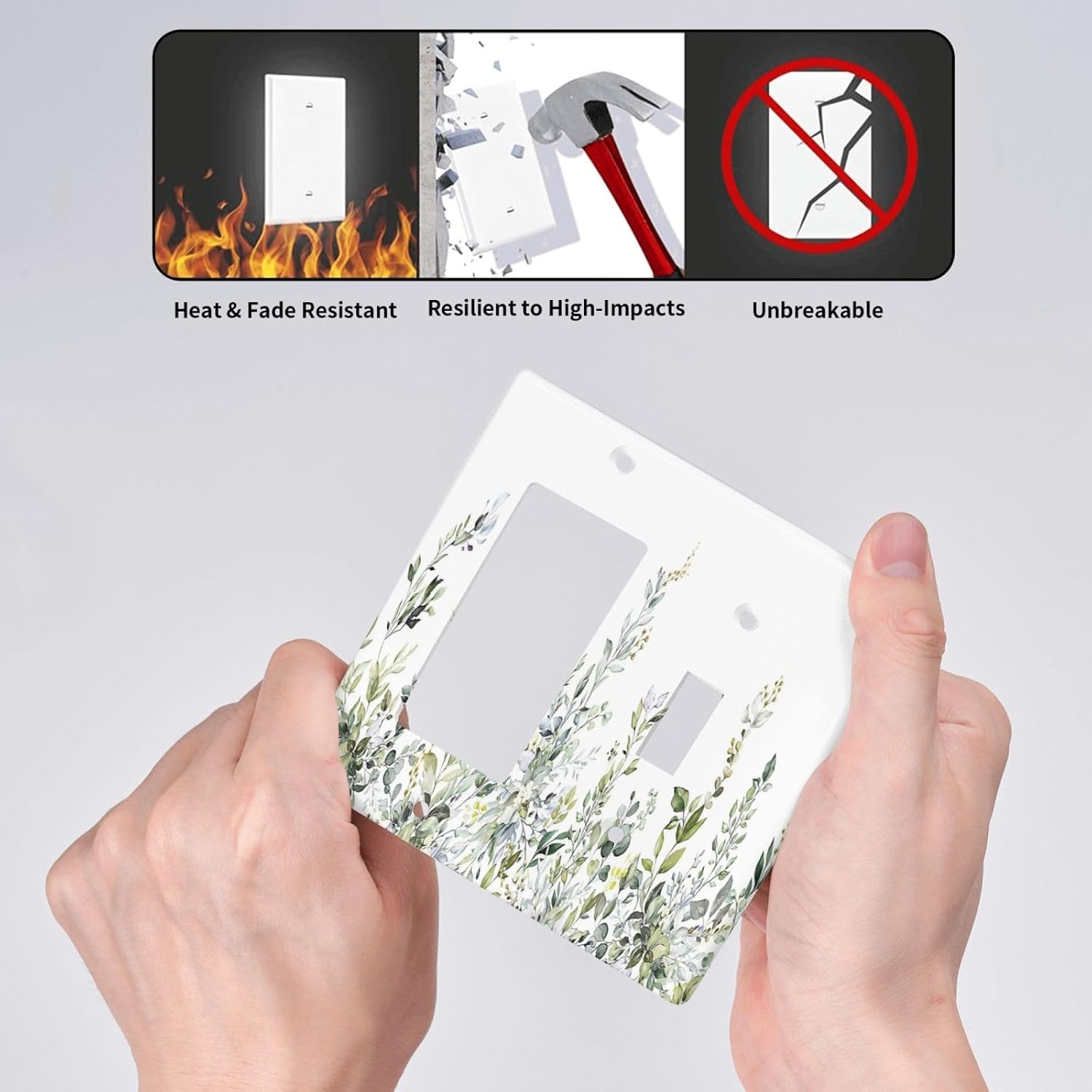 Outlet Covers Boho Farmhouse Flower Leaf Sage Green 1 Toggle 1 Rocker Combination Decorative Wall Plate Electrical Switch Plates Light Switch Cover Plate for Bedroom Cabin Decor