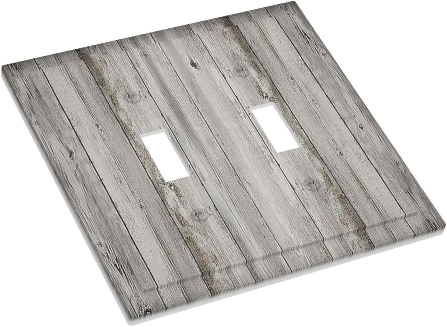 Decorative Switch Plates Farmhouse Rustic Grey Barn Door Wood 2 Gang Double Toggle Outlet Light Switch Cover Wall Plate Electrical Faceplate for Bedroom Cabin Decor