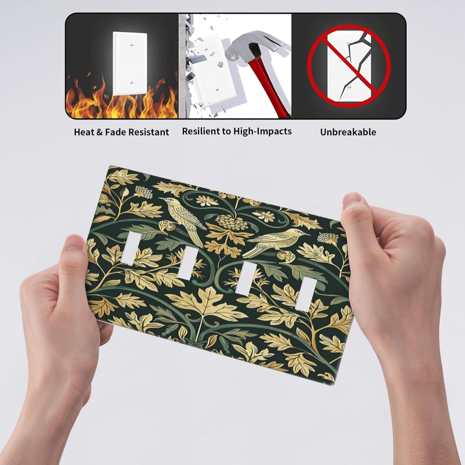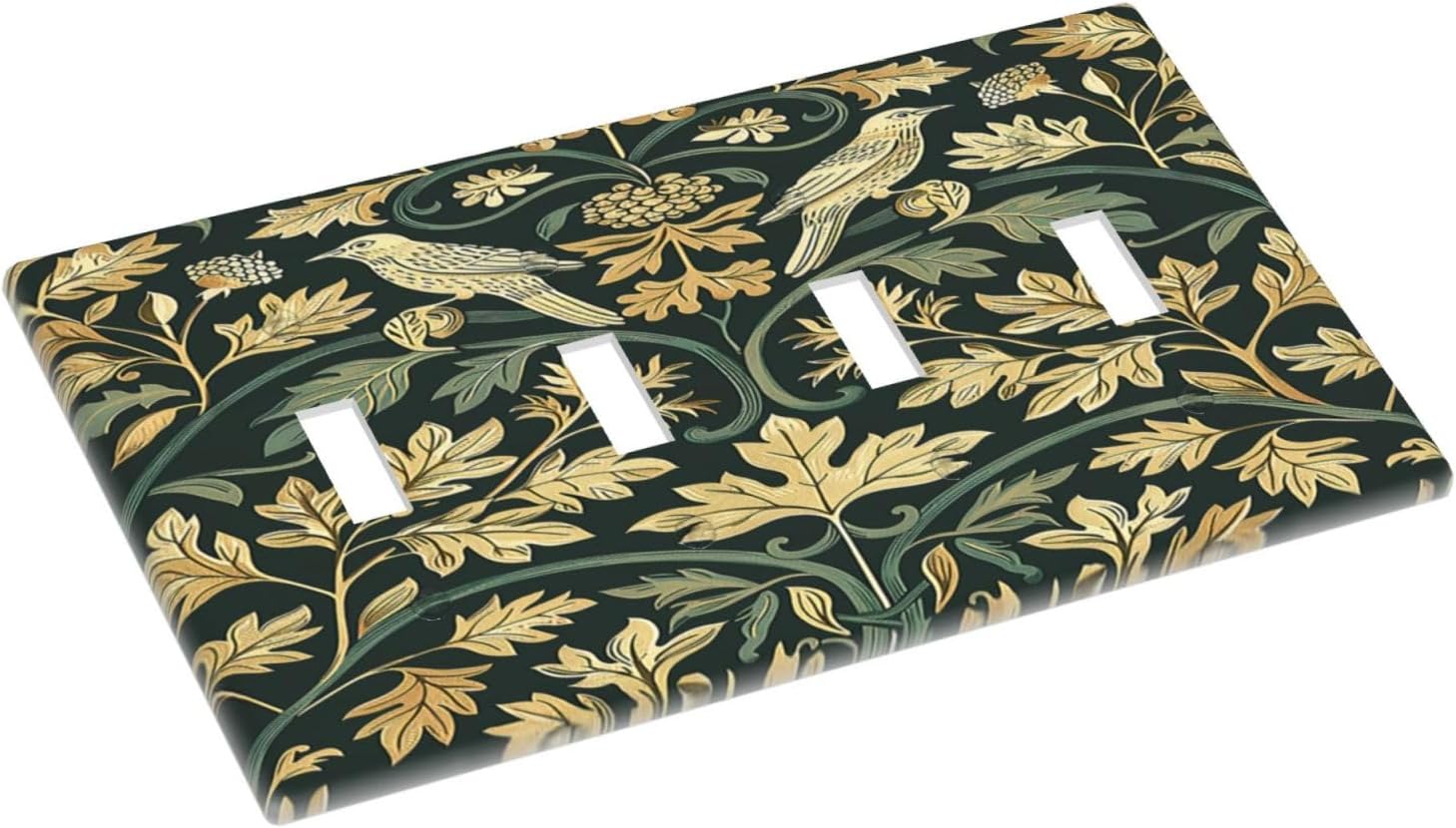 Light Switch Covers William Morris Vintage Botanical Birds Golden Green Leaves Quad Toggle Electrical Faceplate 4 Gang Wall Plate Decorative Switch Plates for Bedroom Home Decor