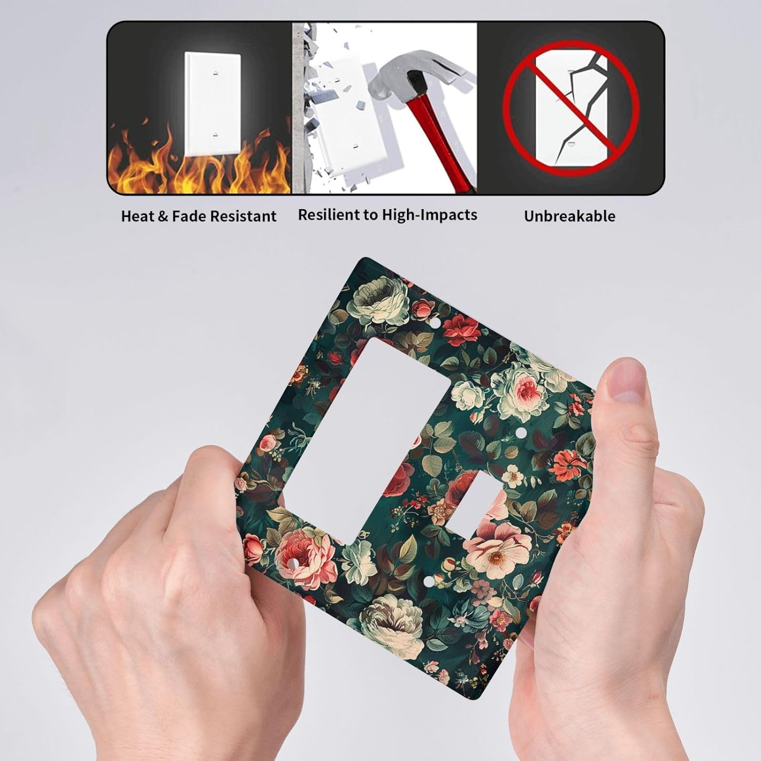 Outlet Covers Baroque Vintage Peony Flower Floral 1 Toggle 1 Rocker Combination Decorative Wall Plate Electrical Switch Plates Light Switch Cover Plate for Bedroom Farmhouse Decor