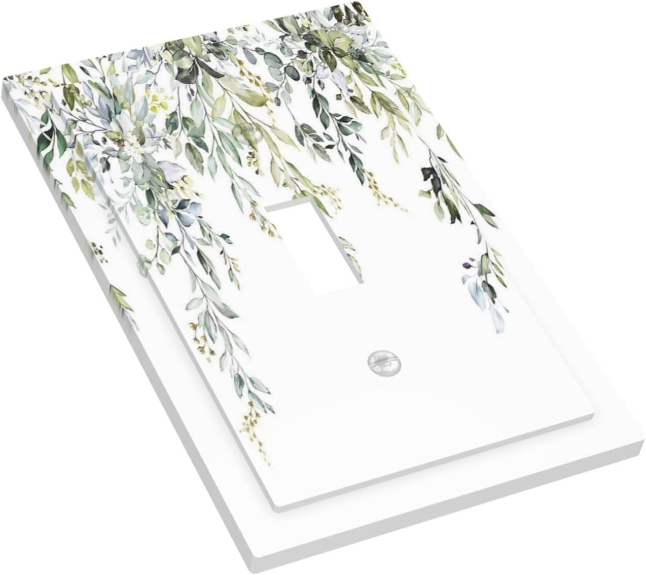 Decorative Light Switch Cover Boho Farmhouse Flower Leaf Sage Green 1 Gang Single Toggle Device Electrical Faceplate Switchplates Decorator Outlet Wall Plate for Bedroom Cabin Decor