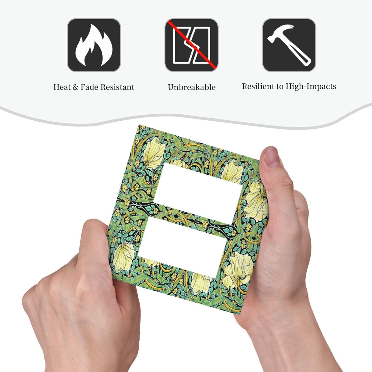 Decorative Outlet Covers William Morris Vintage Floral Yellow Flowers Green Leaf 2 Gang Double GFCI Rocker Electrical Wall Panels Light Switch Cover Plate for Bedroom living Room Decor