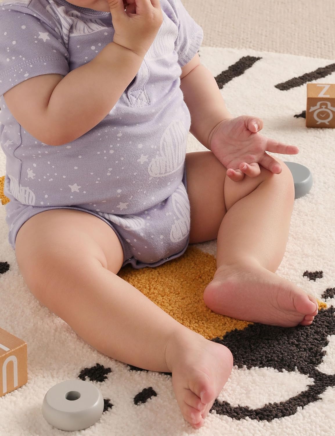 • Snug and Safe: Short-sleeve baby romper provides baby appropriately flexibility and snugness, while better regulates temperature and reduces the risk of over-heating. A gentle, irritation-free tag at the back neckline protects delicate skin, avoiding scratchy seams for ultimate baby comfort.