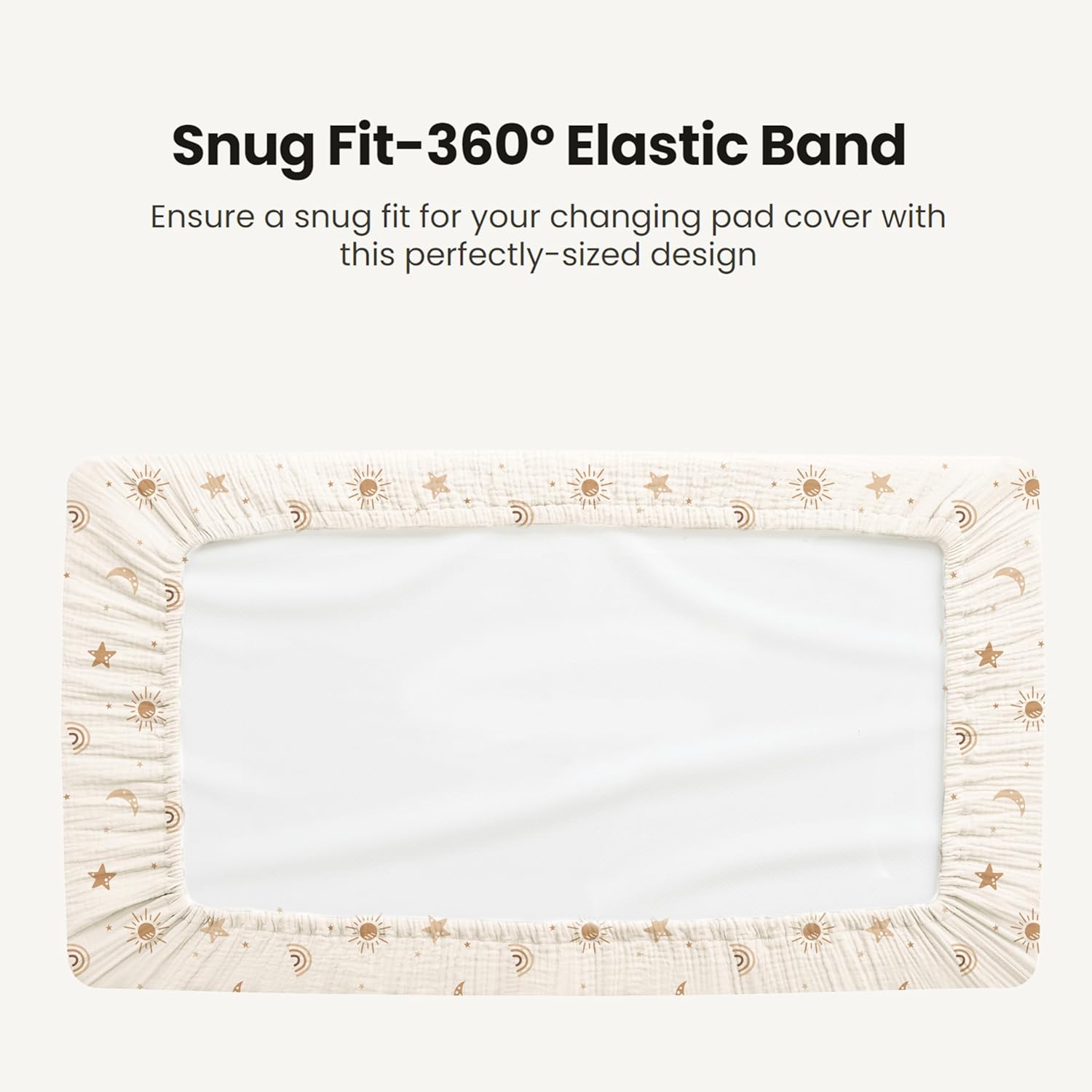 - Snug Fit: Our muslin changing pad cover measures 32” x 16”and features a fully encased 360-degree elastic. This design ensures a snug and secure fit on your changing pad. Say goodbye to slipping covers during diaper changes!