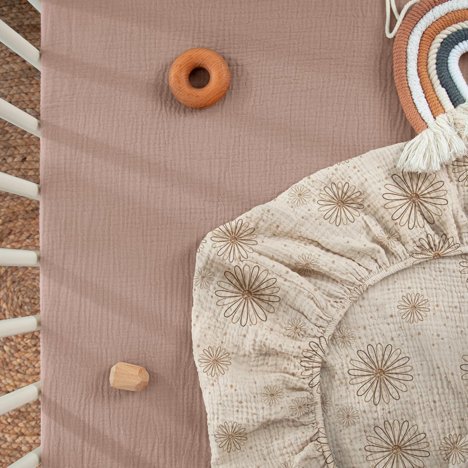 lulumoon Mini Crib Sheets Muslin: Soft Cotton Fitted Mini Crib Mattress Sheets for Boys and Girls 2Pack