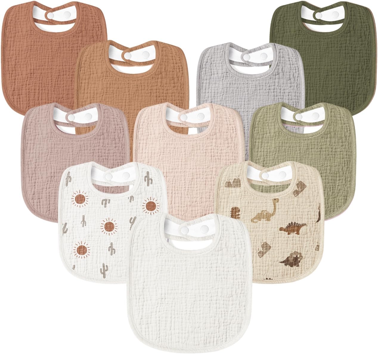 Susurration Muslin Baby Drool Bibs 10Pack Soft Square Adjustable Bandana Bibs for Unisex Baby Girls & Boys