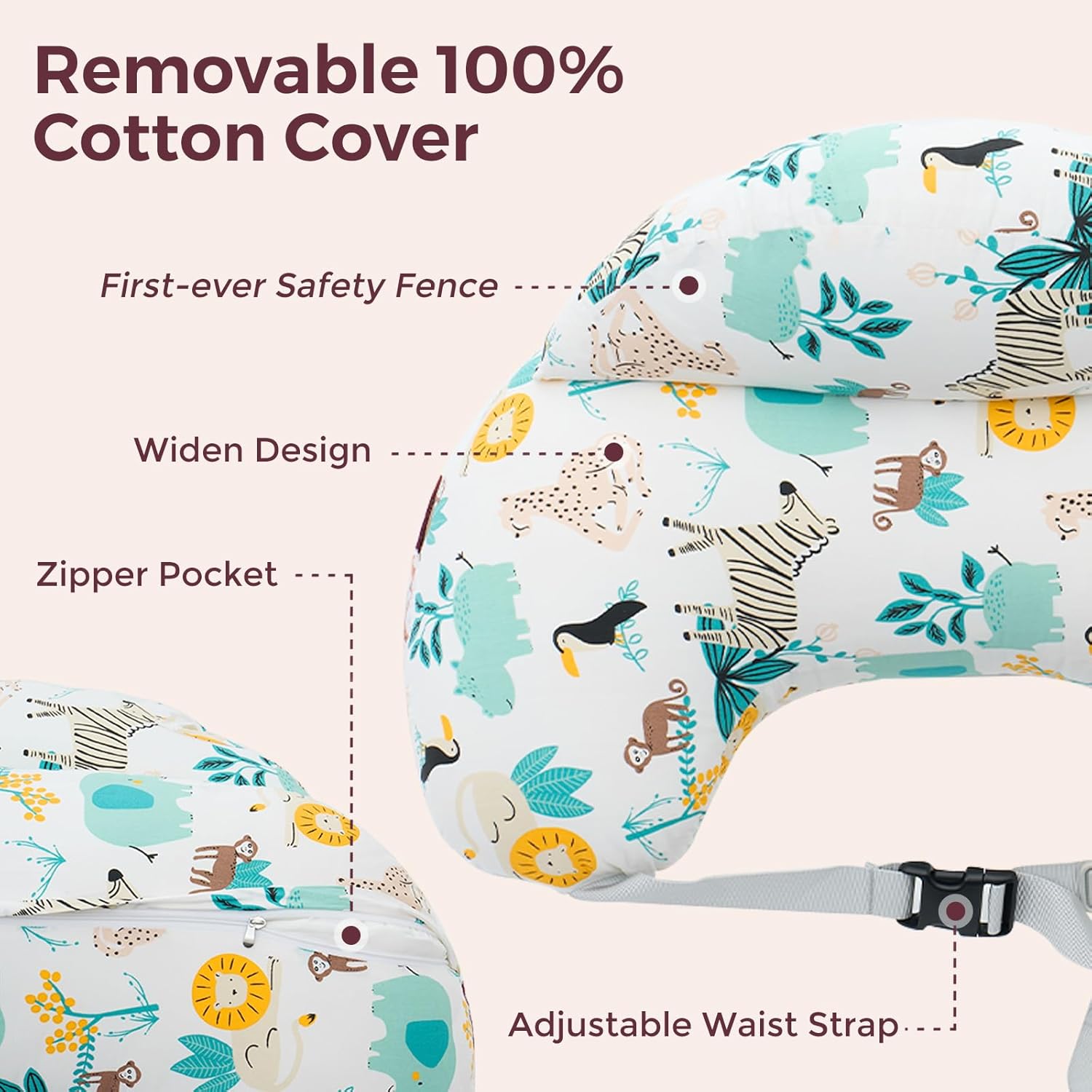 Momcozy Pioneering Safety Fence Nursing Pillow for Breastfeeding- Wider Feeding Pillows for More Support for Mom & Baby- Easier Nursing & Hand Free- Fit for All, Removable Cotton Cover