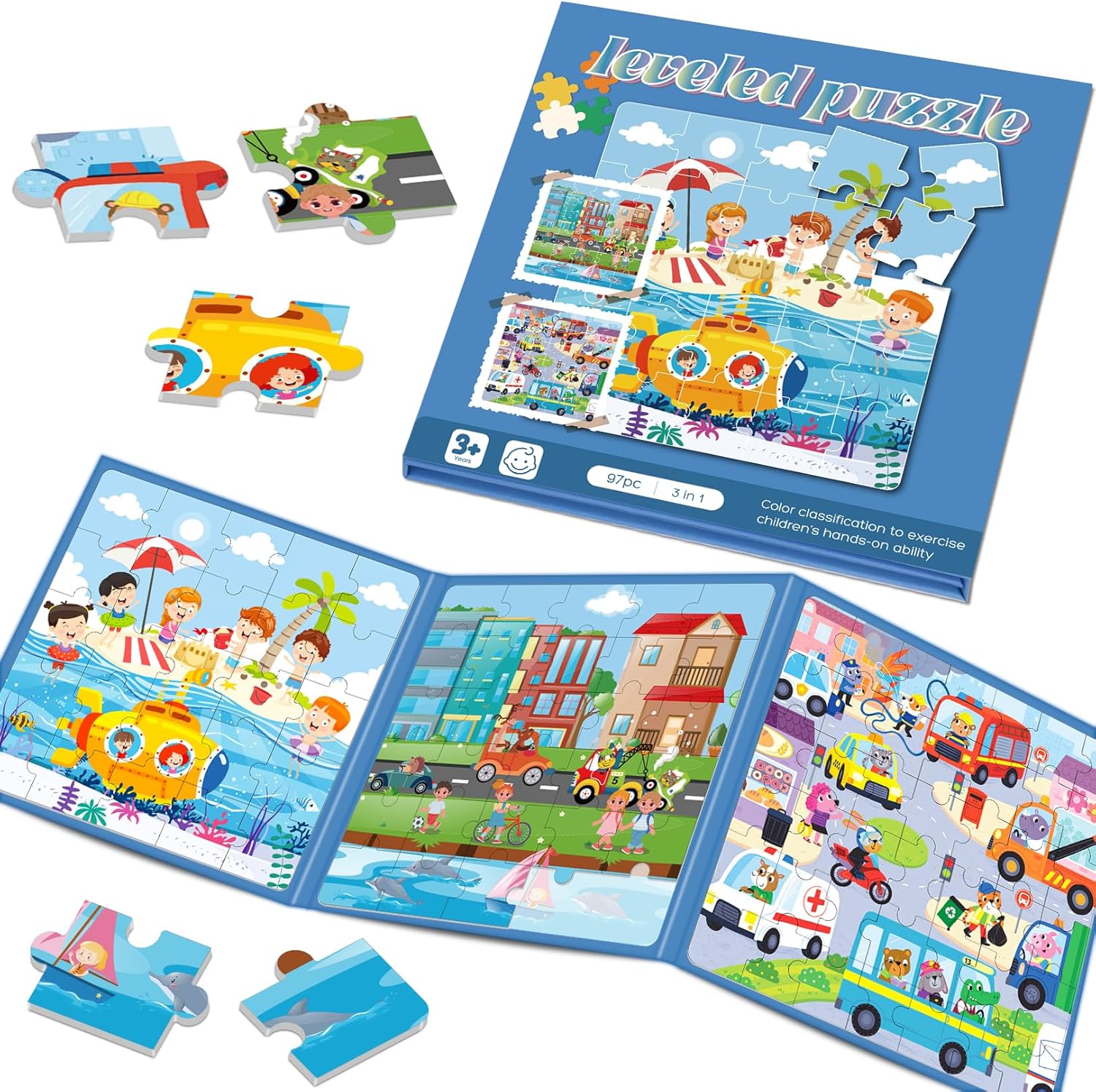 - Construction Zone Fun: 3-IN-1,97(25+30+42) magnetic puzzles feature dinosaur,Portable case for on-the-go play