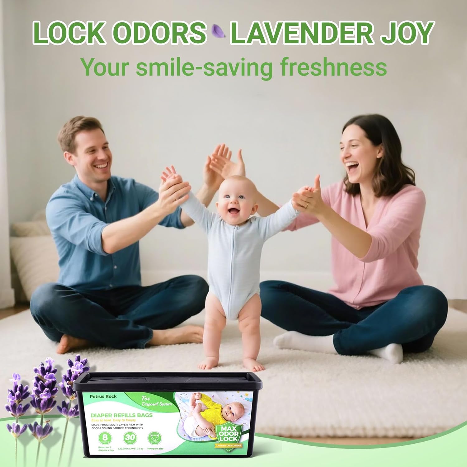 - Odor Lock & Subtle Lavender Scent : Powerful Odor Lock & Lavender Scented: 7-layer diaper bag refills for Genie Signature & Platinum pails. Blending fresh lavender & odor blocking tech, These diaper pail bags refill effortlessly block bad smells, keeping nursery fresh & clean