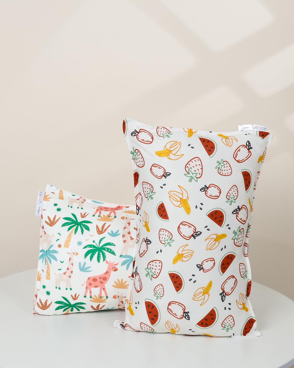 - Perfect Size -pillowcase fits 13x18 inches pillows,also loose fits 12x16 inches toddler pillows, travel pillows,neck pillow,toddler pillow,knee pillow or other small pillows.Unisex boys or girls.Perfect for travel,pre-school naps,bedtime.Pillowcase are special designed for 2 to 6 year olds as their first pillow.