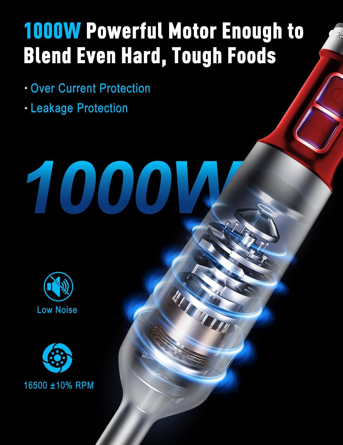 - 【High-Power Motor】Our 2025 Immersion Blender powered by a pure copper brushless motor, effortlessly crushes even the toughest ingredients. Designed for power and durability, it ensures smooth, consistent results with every use.