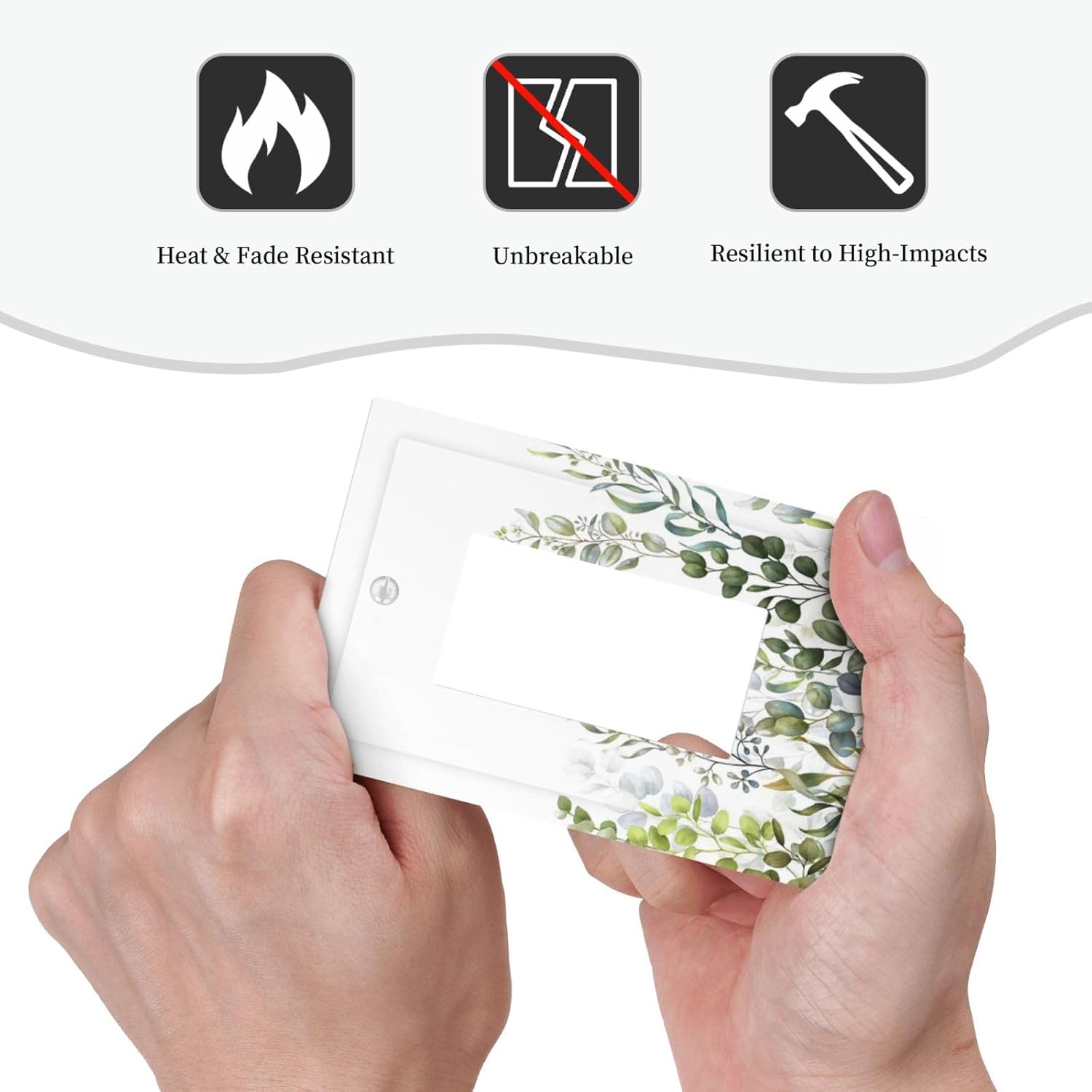 Green Eucalyptus Leaf Plant Herbs Springnature Decorative Outlet Covers 1 Gang Single Rocker Light Switch Cover Plate Wall Plates GFCI Faceplate for Bed Room Living Room Decor