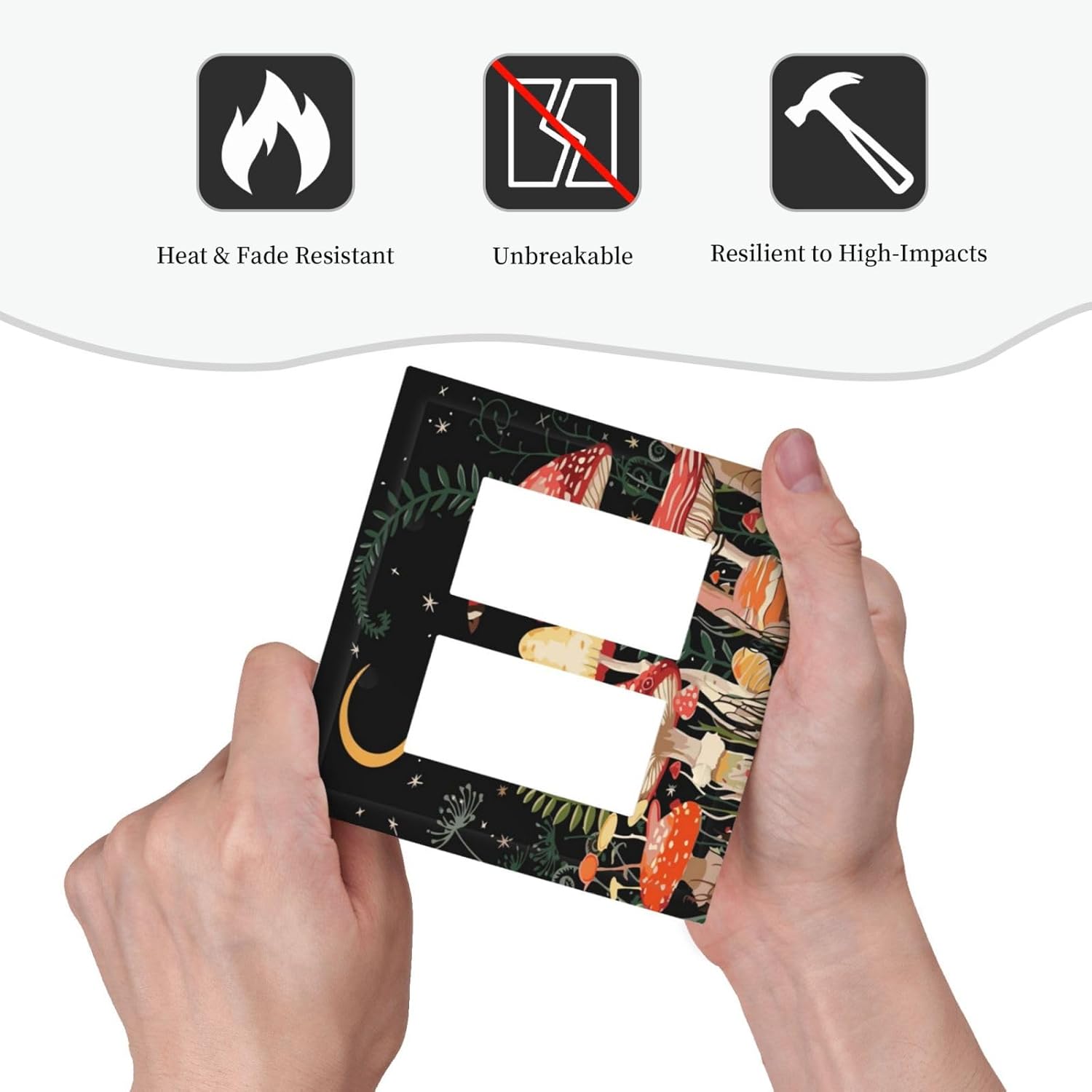 Moon Star Red Mushroom Forest Butterfly Green Plant Decorative Outlet Covers 2 Gang Double GFCI Rocker Electrical Wall Panels Light Switch Cover Plate for Kids Room Home Decor