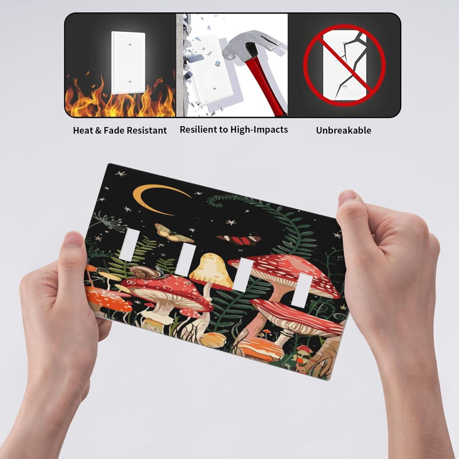 Moon Star Red Mushroom Forest Butterfly Green Plant Light Switch Covers Quad Toggle Electrical Faceplate 4 Gang Wall Plate Decorative Switch Plates for Kids Room Home Decor