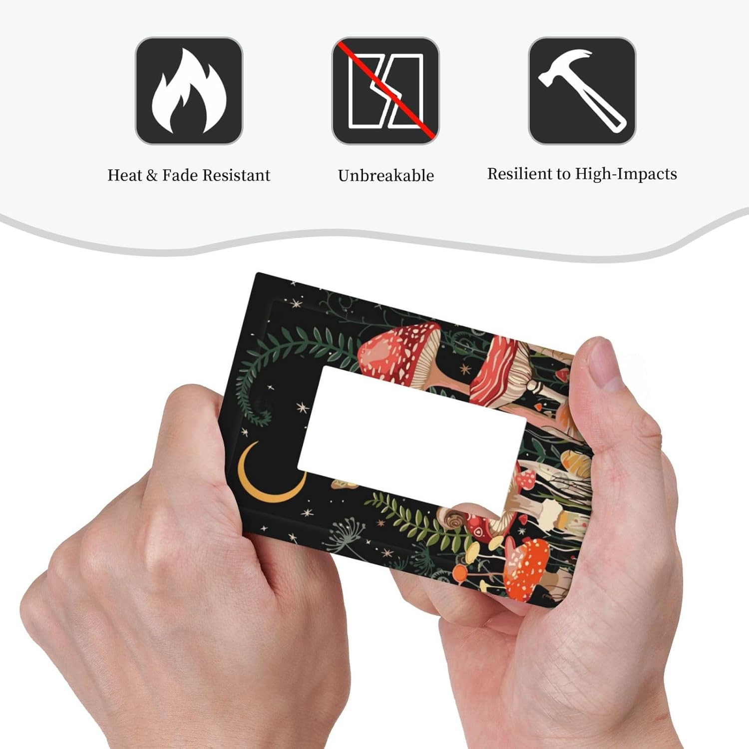 Moon Star Red Mushroom Forest Butterfly Green Plant Decorative Outlet Covers 1 Gang Single Rocker Light Switch Cover Plate Wall Plates GFCI Faceplate for Kids Room Home Decor