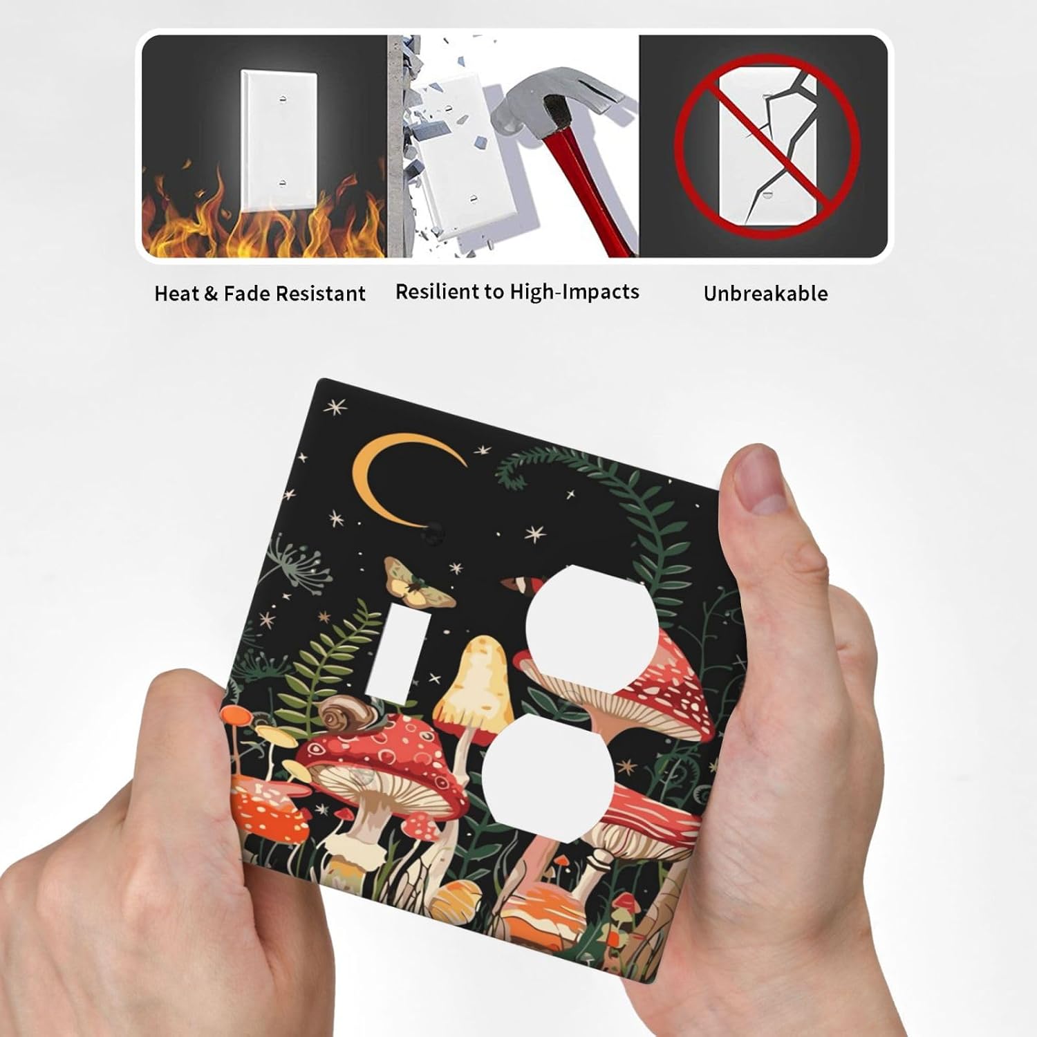 Moon Star Red Mushroom Forest Butterfly Green Plant Wallplates 1 Toggle 1 Duplex Switch Plate Electrical GFCI Faceplate Decorative Light Switch Covers for Kids Room Home Decor