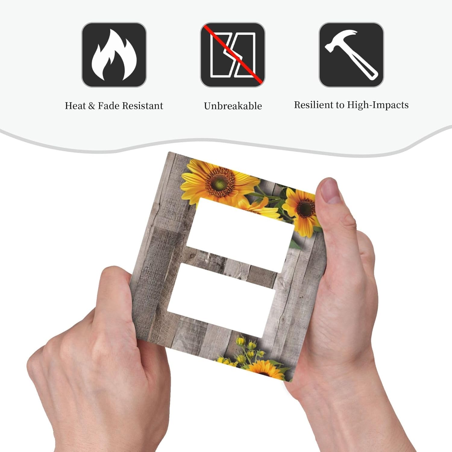 Sunflower Rustic Brown Gray Wood Decorative Outlet Covers 2 Gang Double GFCI Rocker Electrical Wall Panels Light Switch Cover Plate for Farmhouse Home Decor