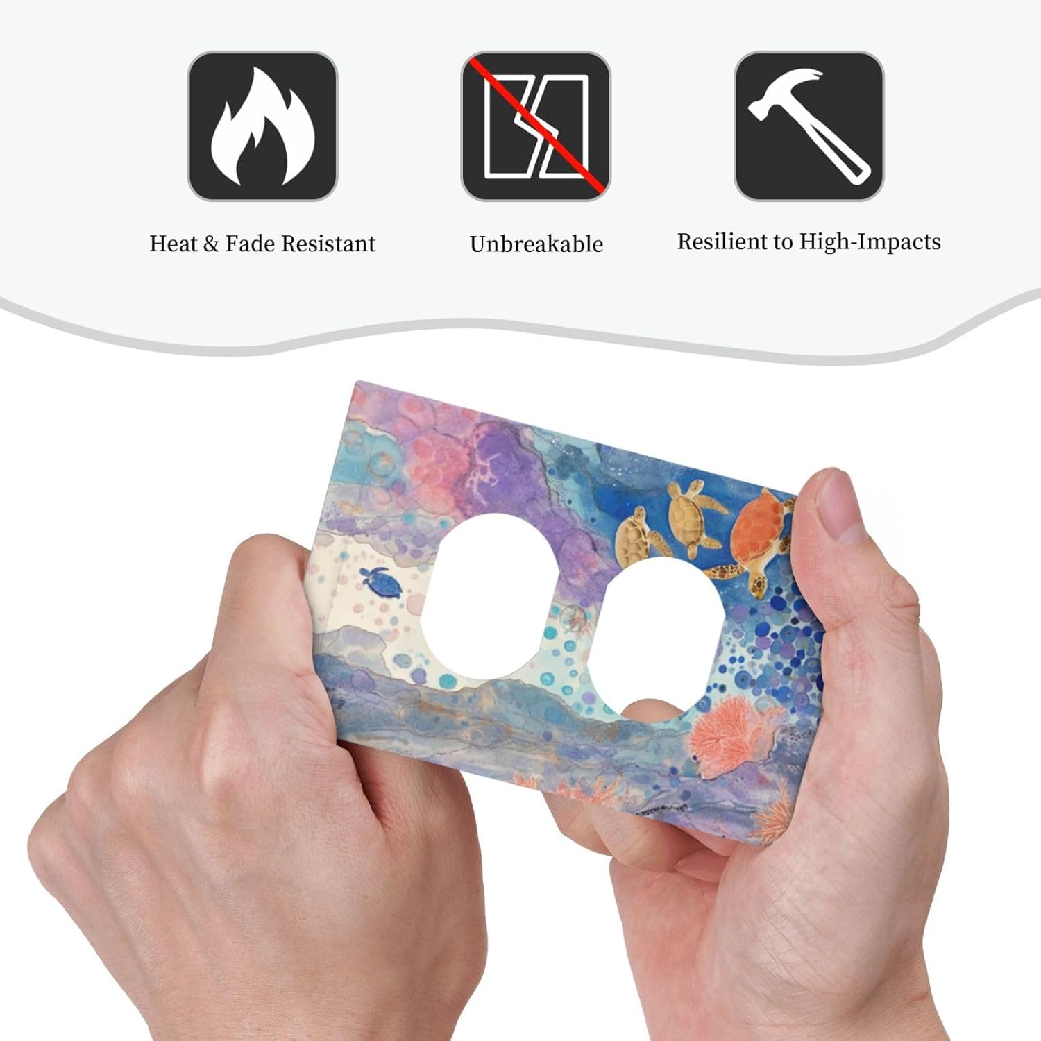 Turtle Coral Fish Watercolor Colorful Underwater World Outlet Covers 1 Gang Duplex Light Switch Cover Decorative Switch Plates Electrical Receptacle Faceplate Wall Plate for Kids Room Home Decor